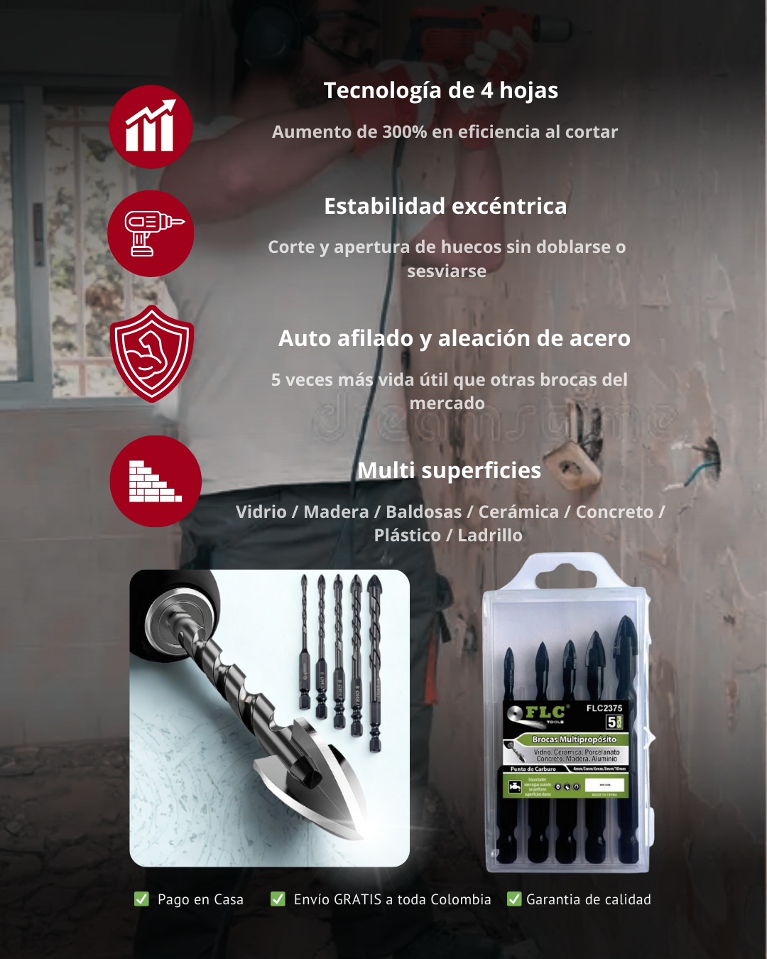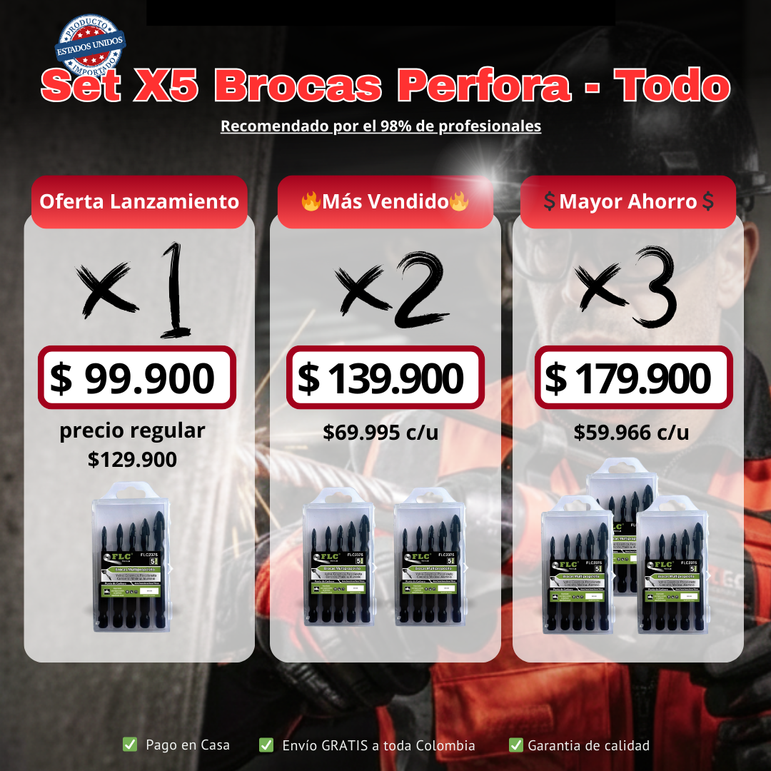 Versatilidad y Durabilidad Superior. Material de Tungsteno y diseño multiuso que reemplaza brocas especializadas (mampostería, HSS), ahorrando costos.