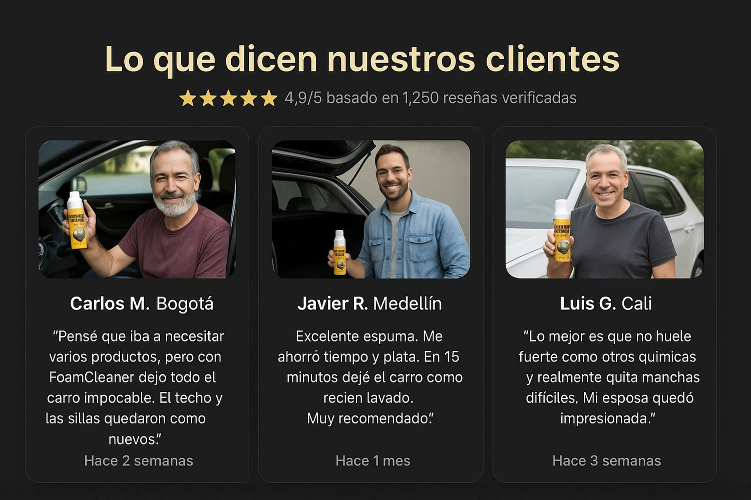 Resultados basados en opiniones reales de clientes en Colombia que probaron FoamCleaner durante los últimos 6 meses.